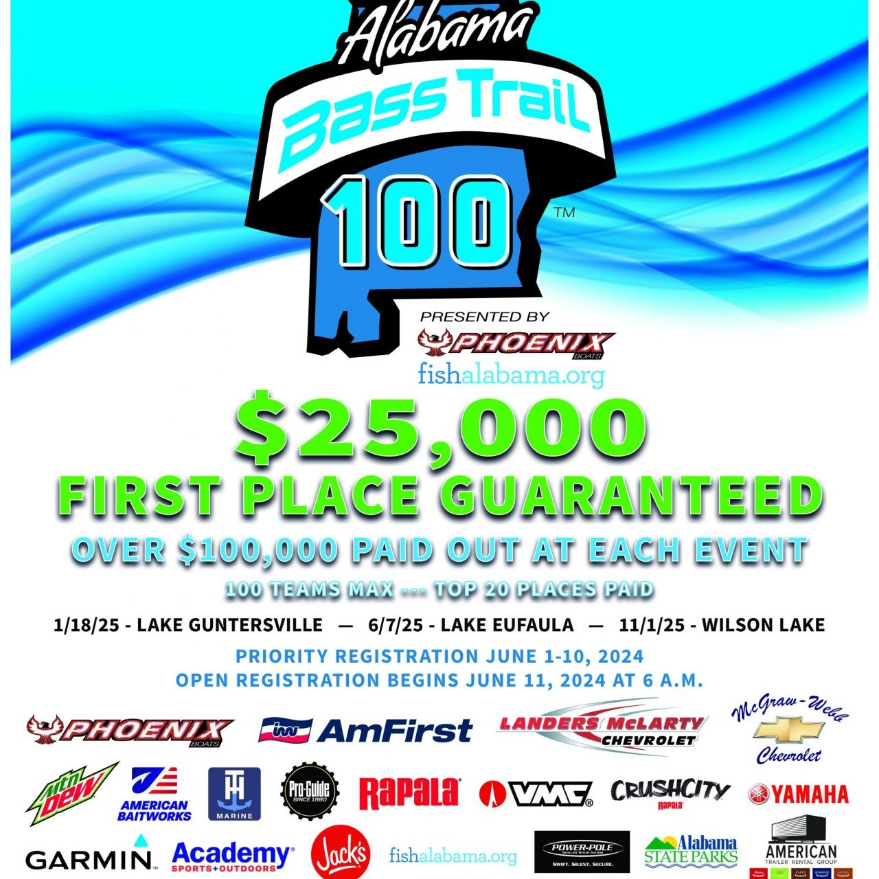 Alabama Bass Trail Announces 2025 ABT 100 Tournament Schedule and Payout Priority Registration Opens June 1