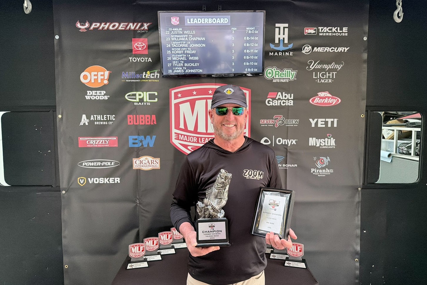 Michael Walsh of El Cajon, California, won the Co-angler Division Friday with a three-day total of 14 bass weighing 36 pounds, 7 ounces. Walsh took home the top prize package of a new Phoenix 518 Pro bass boat with a 115-horsepower outboard motor.