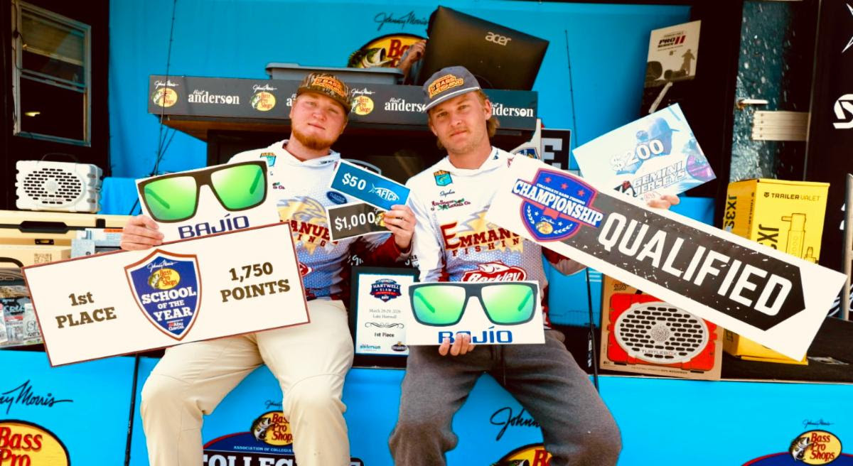 ANDERSON, SC (March 29, 2026) – Tournament competition has concluded for the CrushCity Hartwell Slam presented by Sufix contested at Lake Hartwell in Anderson, SC.  The full field of more than 280 teams competed again today, vying for their share of the more than $20,000 in prizes and contingencies.  Teams also earned double points for their two highest-placing teams inside of the Top 150, and the Top 15 teams in the final event standings earned automatic qualification into the 2026 Collegiate Bass Fishing Championship presented by Bass Pro Shops.