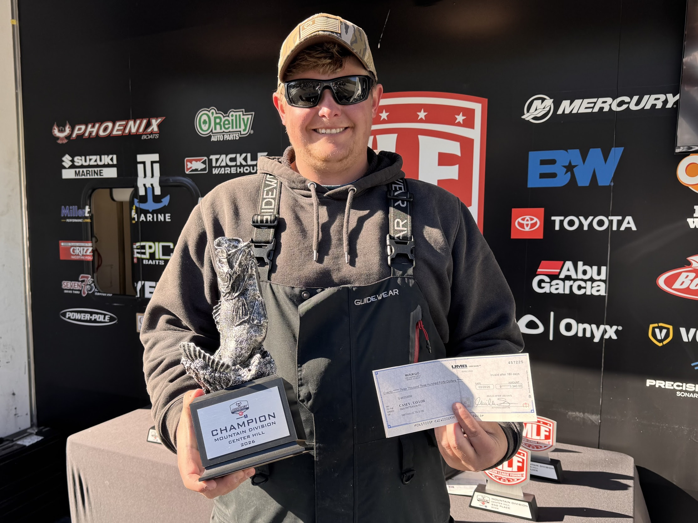 SPARTA, Tenn. (March 30, 2026) – Boater Casey Taylor of Smithville, Tennessee, caught a total of five bass weighing 20 pounds, 3 ounces, to win the MLF Phoenix Bass Fishing League (BFL) Presented by T-H Marine on Center Hill. The tournament was the second of five events of the season for the BFL Mountain Division. Taylor earned $3,340 for his victory.